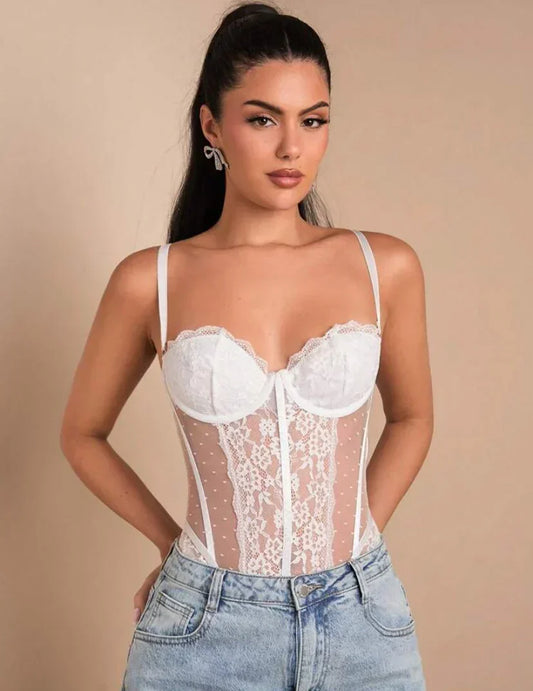 Set sexy body con parches de encaje para mujer (sin aros / liguero)