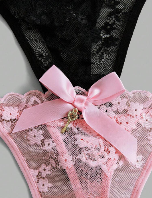 3 piezas tanga con decoración de lazo de encaje floral