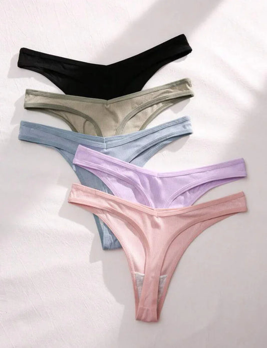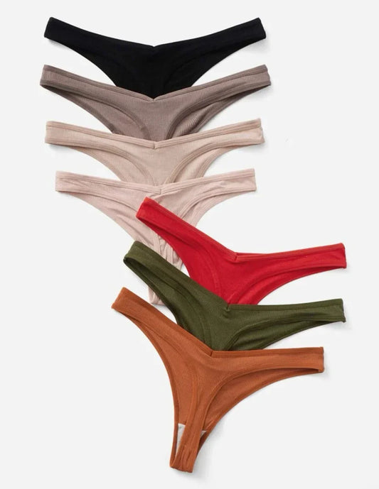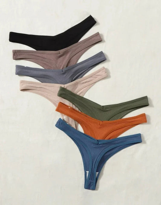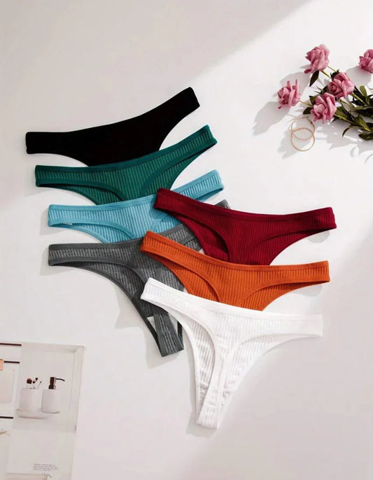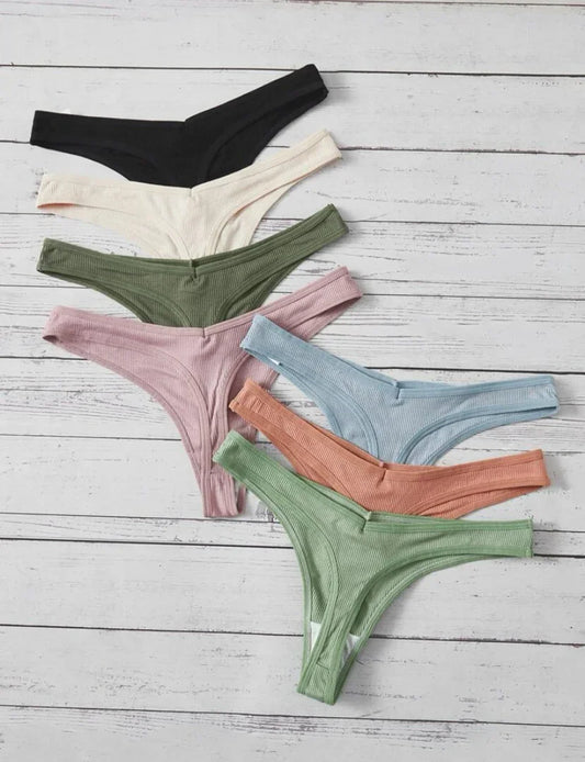 7 paquetes de bragas sexy de canalé sólido