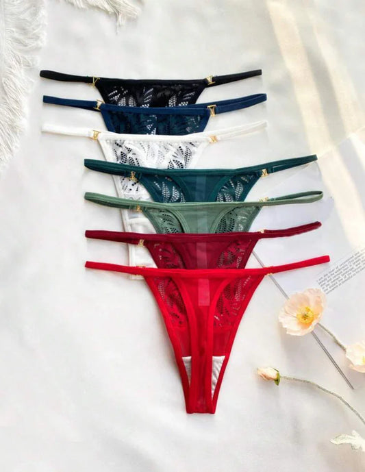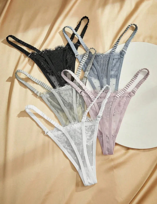 5 paquetes Tanga de encaje floral Lencería sexy