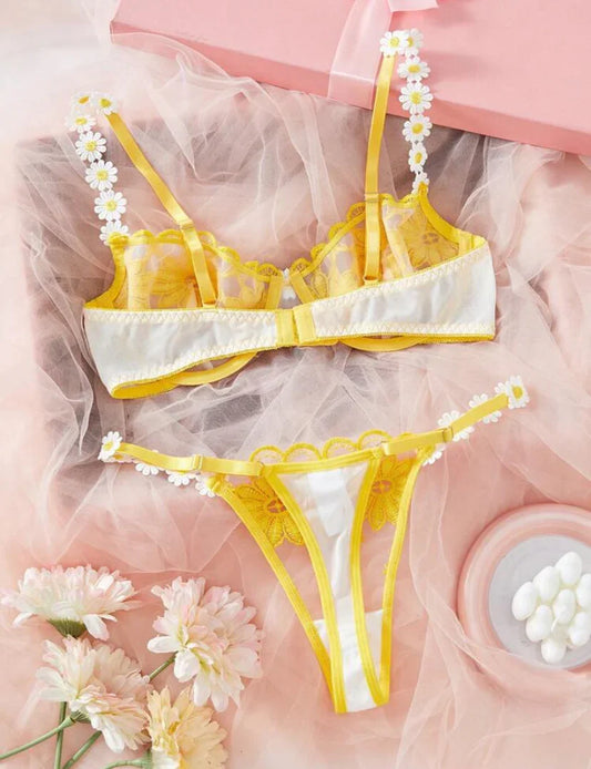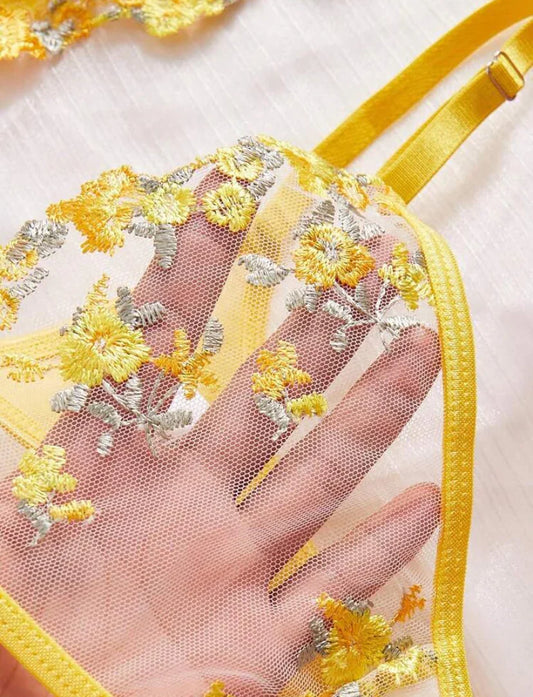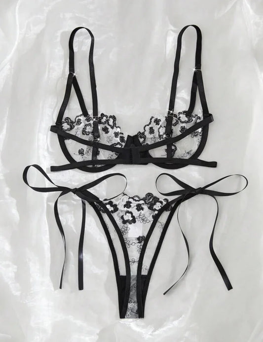 Set de lencería con bordado floral de malla con aro