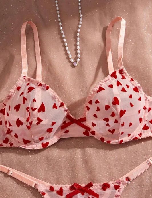 Conjunto de ropa interior de encaje y sujetador con aro de contraste, lencería para el Día de San Valentín