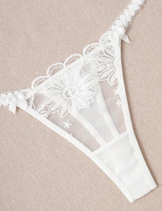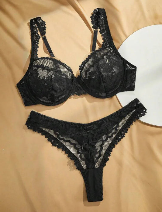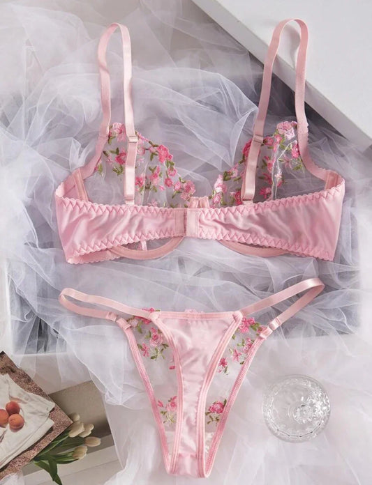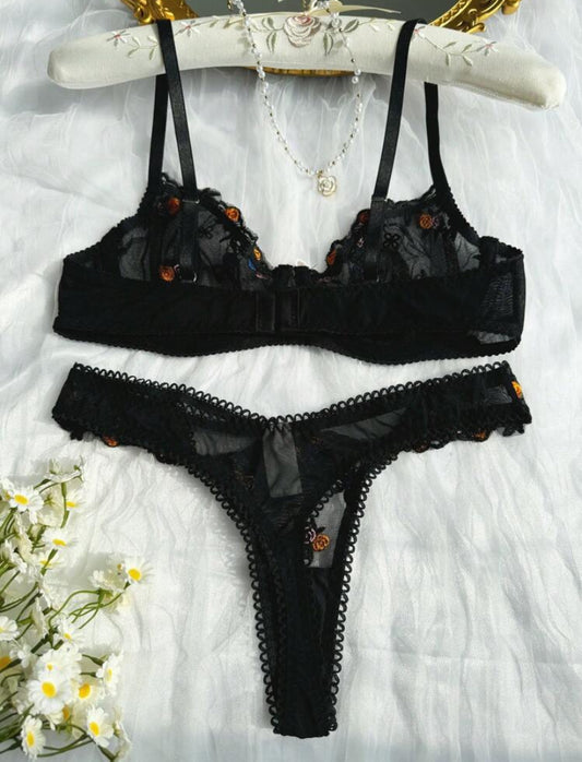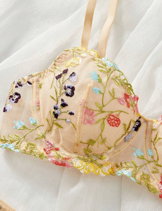 Classic Sexy Set de lencería con bordado floral de malla con aro