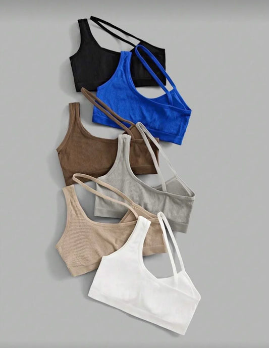 Sujetadores deportivos de verano de color liso, sin costuras y con cuello asimétrico (paquete de 6)
